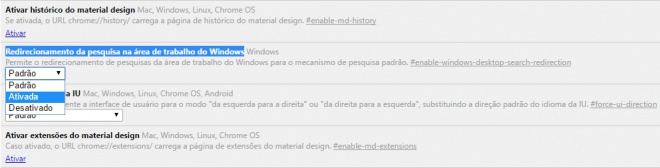 Essa atualização foi a primeira a dar fim ao suporte a versões antigas do Windows, incluindo o XP e Vista. Mas há outras novidades ocultas, dentro da seção de recursos em teste, que permitem uma integração maior com o sistema da Microsoft. Talvez a mais interessante seja usar o sistema de buscas do desktop de forma interna ao navegador da Google. Na prática, isso permite realizar buscas com Cortana e ter os resultados exibidos no Chrome, ao invés do navegador Edge, como padrão no Windows 10.