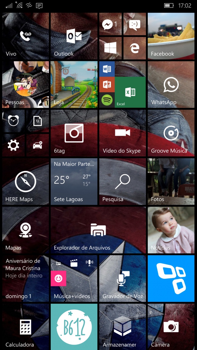 Se você não faz parte do time Android e muito menos torce pelo Homem de Ferro, provavelmente você irá curtir a customização feita pelo leitor Felipe Victor em seu Nokia Lumia 930. Aqui vemos um belíssimo papel de parede do Capitão América ilustrar de forma elegante o fundo dos blocos dinâmicos do Windows Phone. O grande centro do papel de parede está no escudo emblemático do nosso herói. Algumas partes da tela acabam ocultando um pouco de Steve Rogers, mas por uma boa causa. Aqui vemos as notificações sendo exibidas dentro de cada bloco, deixando tudo à vista para o usuário do Windows Phone. Se você deseja ter esse papel de parede bacana, não esqueça de conferir nossa galeria no final da matéria.