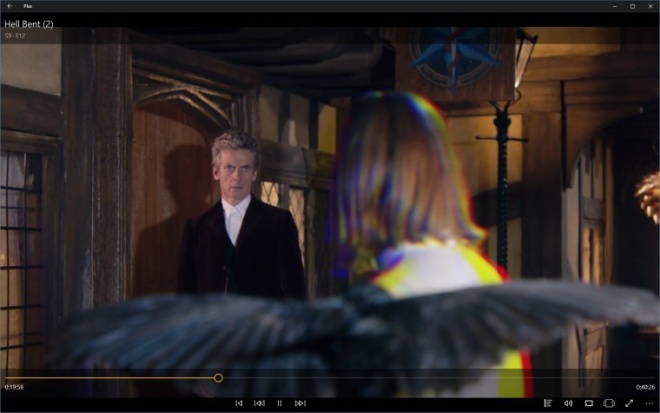 O player também está mudado, com muito mais destaque ao vídeo graças a controles mais discretos, posicionados sempre na barra inferior. De maneira geral, parece muito com o reprodutor de mídia nativo do Windows 10, o Filmes e TV. Antes, o Plex mostrava os controles de pause e avanço no centro da janela.