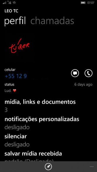 Todos estes novos itens fizeram com que a imagem do contato e as demais informações sobre a conversa precisassem ser redimensionados e reposicionados, ficando ligeiramente mais abaixo do que era encontrado anteriormente. Isto significa que você precisará rolar um pouco mais a página para visualizar todas os seus itens, porém pode-se dizer que as alterações estão cada vez mais levando a interface pra o que se espera de um app para WIndows 10 Mobile, ainda que restem diversas mudanças para serem feitas.