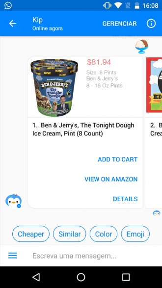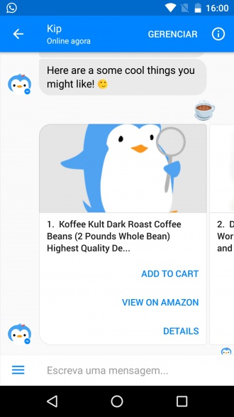Por enquanto o bot funciona apenas em inglês e com a Amazon, mas espera-se que com o tempo mais lojas sejam incorporadas ao Kip. Também espera-se que mais funções sejam introduzidas, como suporte para mais emojis. O bom é que o Kip aprende de acordo com a utilização, tornando a experiência a longo prazo vantajosa.