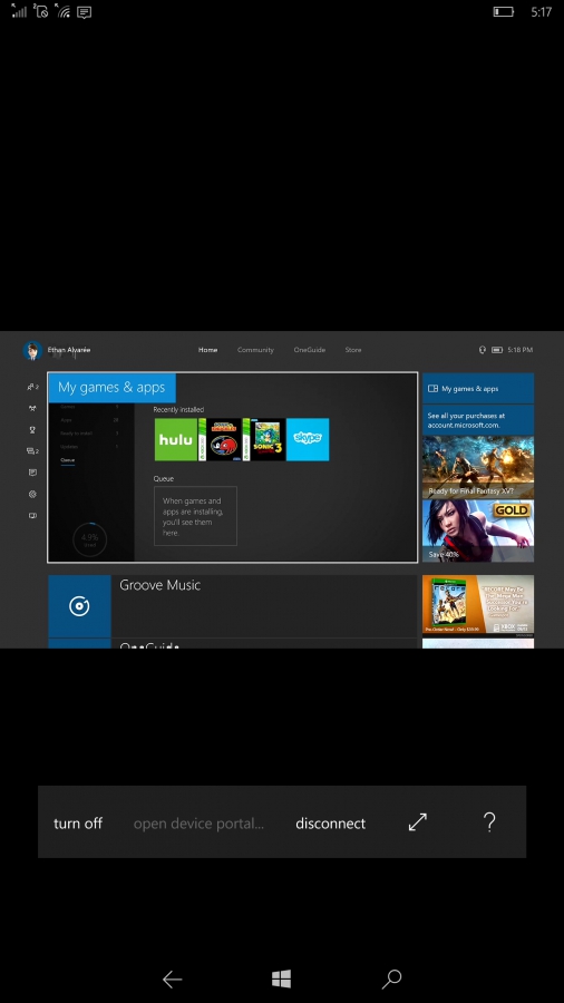 O recurso de conseguir transmitir a tela do Xbox para o PC era inacreditável, e até hoje funciona de uma maneira excepcional, contanto que os dispositivos estejam ligados na mesma rede local. Com essa nova funcionalidade disponível, começaram a surgir rumores que o Windows 10 Mobile também seria capaz de receber a transmissão do Xbox. Com uma atualização da Microsoft disponibilizada em maio, o app móvel oficial do console ganhou a nova ferramenta de solicitação de dispositivos remotos, para a comoção generalizada entre os jogadores do lado verde da força, porém, por conta de um erro de DPI que a compilação trouxe, esse sonho teve que ser adiado.