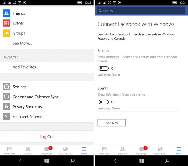 Agora, os usuários do Facebook para Windows 10 Mobile podem sincronizar seus contatos e eventos do calendário do aplicativo para com os aplicativos "Pessoas" e "Calendário", disponibilizados pela Microsoft. Dessa forma, o usuário pode, por exemplo, receber notificações quando o aniversário de algum amigo estiver perto ou algum evento. Claro que também é possível desativar essa função para que você não seja perturbado o tempo todo com notificações do tipo, e tudo é feito através das configurações do app do Facebook.