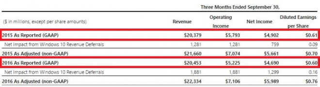 Segundo revelado pela casa de Redmond, sua receita no trimestre alcançou a faixa dos US$ 20,4 bilhões, ficando assim ligeiramente acima do que foi registrado no mesmo período do ano anterior, onde tivemos US$ 20,3 bilhões. Partindo para o lucro operacional, a Microsoft registrou um pequeno declínio em relação ao primeiro trimestre fiscal de 2016, alcançando US$ 5,2 bilhões contra US$ 5,7 bilhões.
