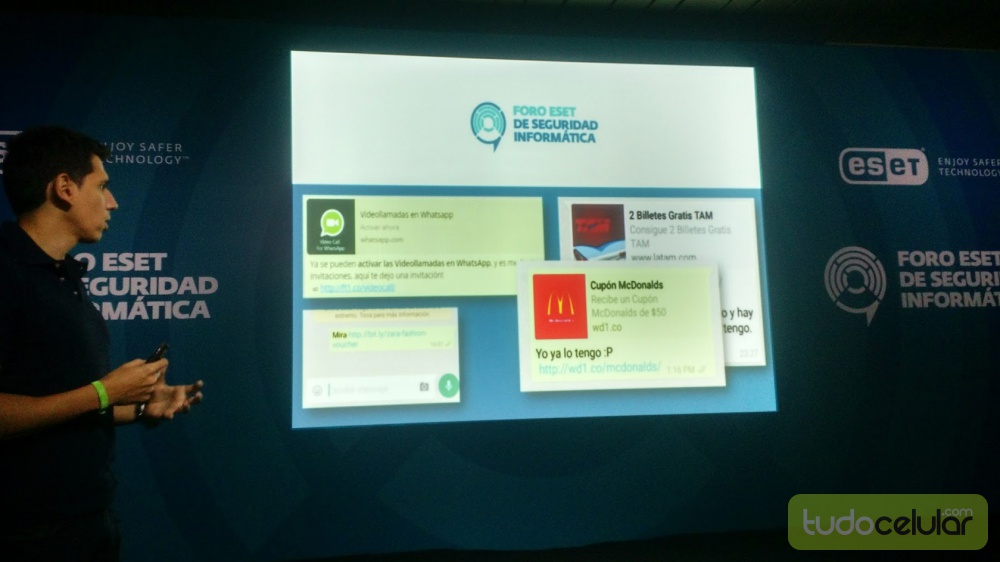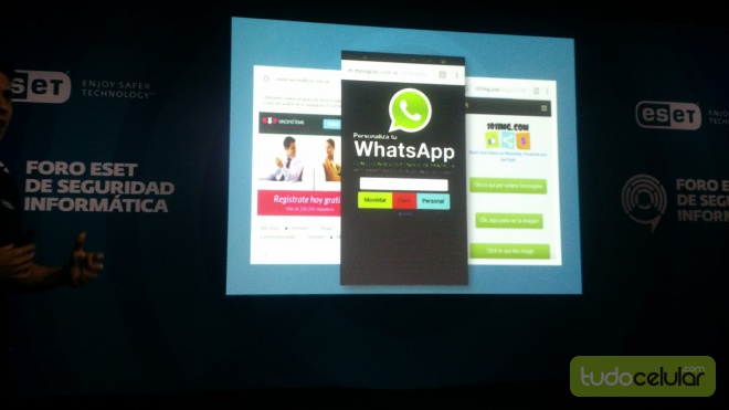 Durante o 3º Fórum Sobre Segurança Digital, especialistas da ESET demonstraram como são aplicados diversos ataques na internet. Conforme explicaram, criminosos focam em plataformas de uso massivo para atingirem o maior número de usuários possível, e poucas coisas no mundo são tão populares quanto o WhatsApp.